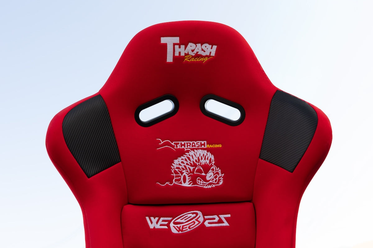This early exposure and sustained involvement in the scene motivated Wallace to restart the era–defining brand Thrash, which he notes “existed before him,” as a continuation of a long–standing legacy of patterned racing seats that influenced drift culture from the 1990s onward. Dormant since the 2010s following the death of its original owner, Thrash was methodically rebuilt by Wallace after securing the family’s agreement—having himself owned an original seat from 2005. Beginning with original seats, tracing production histories, and locating factories that no longer existed, Thrash was revived not out of a nostalgic impulse, but as a way of keeping the culture’s history alive.
